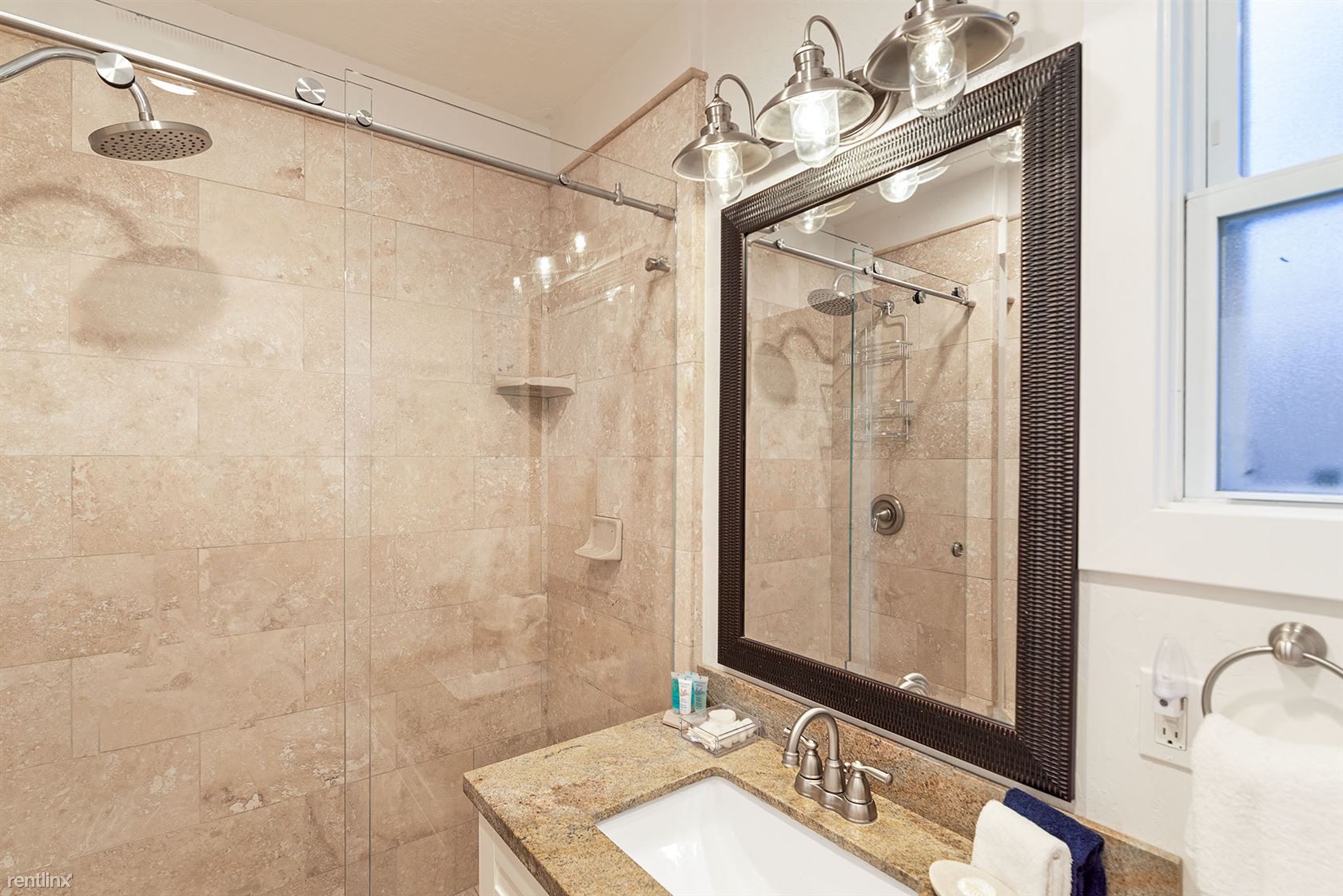 King bed in master, 43” HDTV, en suite bath is a shower over tub
