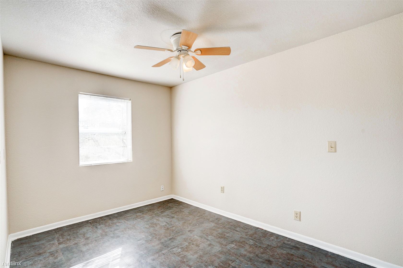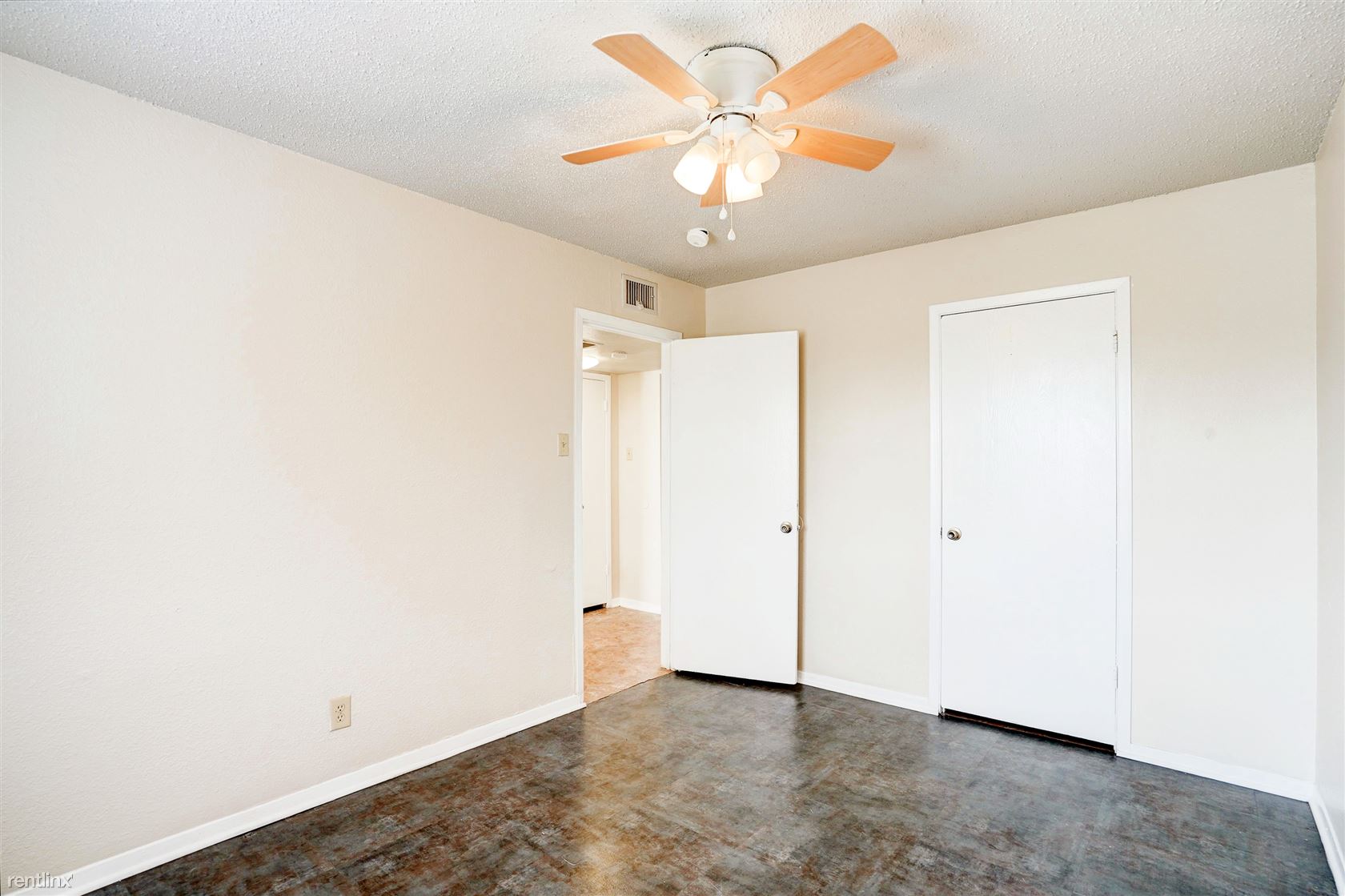 The bathroom features a single vanity and a built-in tub/shower.